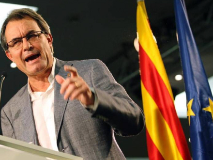 - Jeg er klar over, at vi i den indledende fase på tidspunktet mellem folkeafstemningen og proklamationen af vores uafhængighed kan havne uden for EU, siger den den catalanske præsident Artur Mas til den italienske avis La Repubblica.