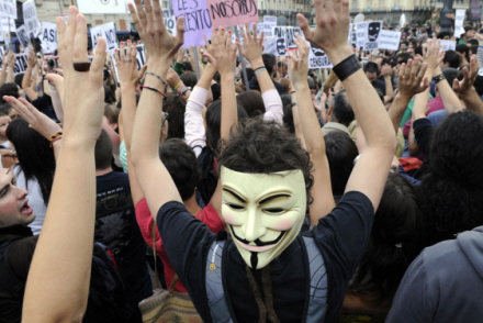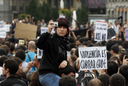 Politiets ordre om at forlade stedet blev fuldstændig ignoreret. Flere end 1000 demonstranter deltog i nat i en kæmpe protestaktion på det centrale torv Puerta del Sol i Madrid.