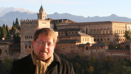 Jesper er journalist, omvandrende leksikon og kunderådgiver hos Radio Solymar. Her fotograferet foran Alhambra de Granada med Sierra Nevada i baggrunden. Efter sneen er kommet...