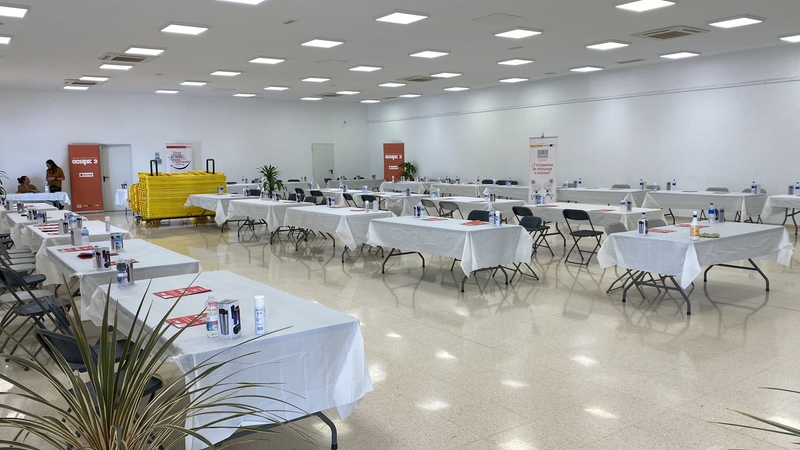 Overalt var der Cruz Roja-frivillige til at hjælpe de jobsøgende med at finde frem