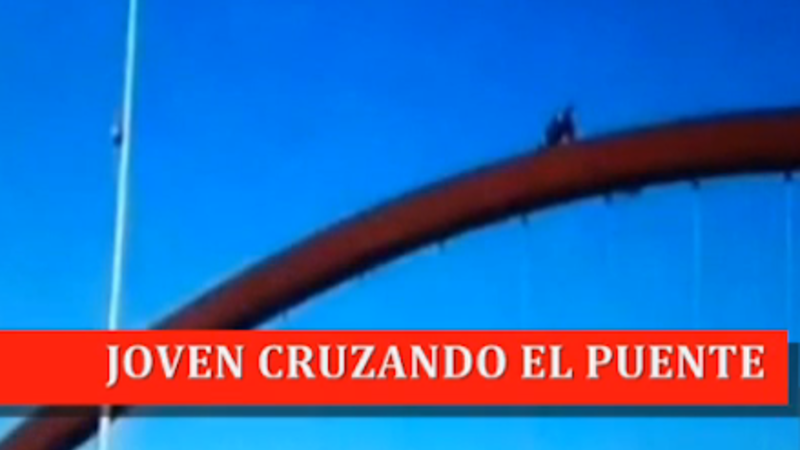 Buen, der er sig i en afstand på mere end 2,5 meter over kørebanen på broen, er mindre end en meter bred. Drengen måtte kravle op de første meter, indtil han havde fået fodfæste. Herefter rejste han sig og fortsatte med at gå op mod toppen.