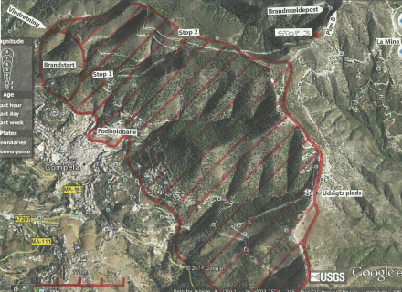 De har lavet et kort over, hvor branden har hærget og sendt til Spanien i Dag. Du kan klikke på kortet for at gøre det større (åbner et nyt faneblad).