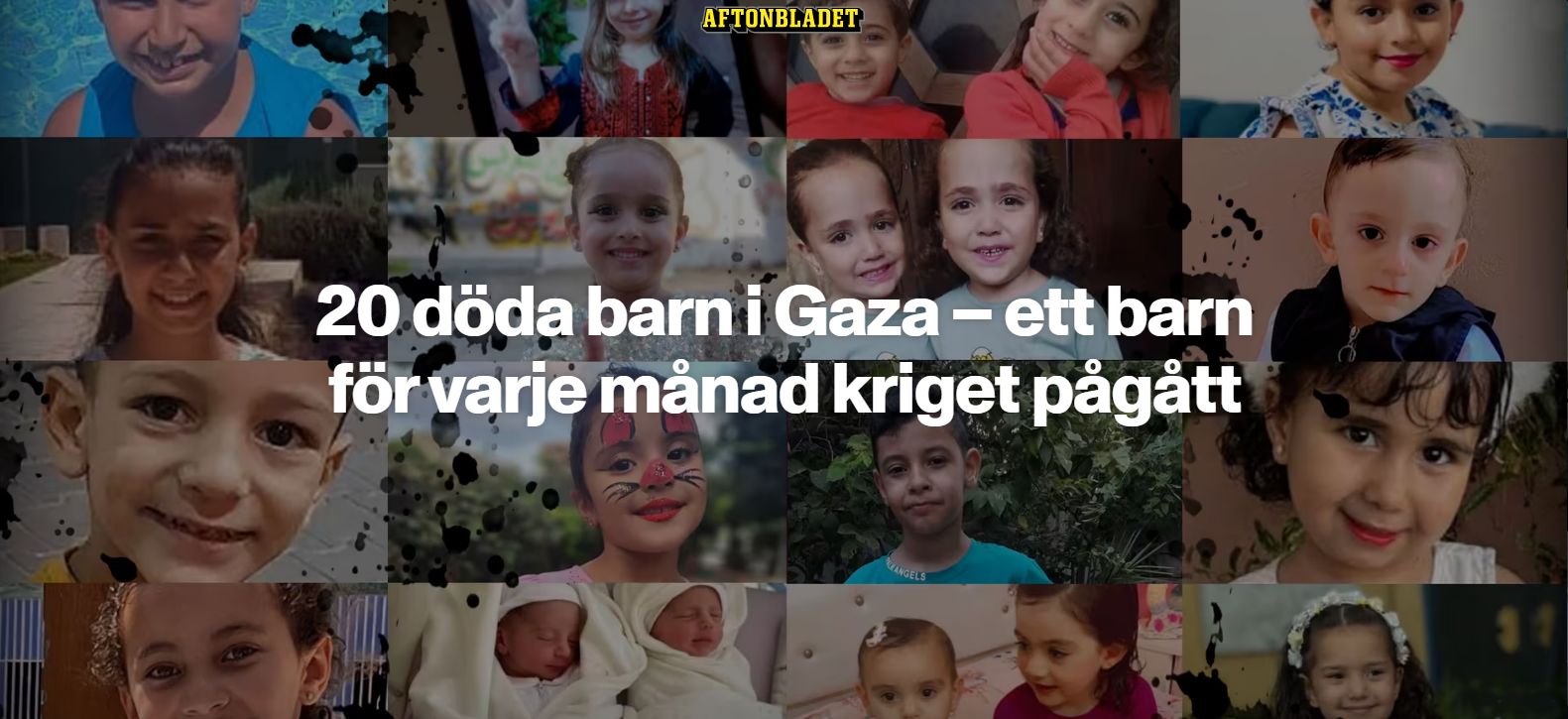 Fredag den 23.maj publicerede Aftonbladet billeder af 20 palæstinensiske børn, der blot var 20 ud af de over 18.000 børn, der er blevet dræbt under Israels angreb i Gaza gennem de seneste 20 måneder.