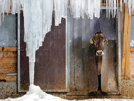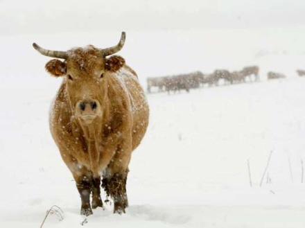 Køerne i Maturana, Asturien, klarer sig fint i den bidende kulde