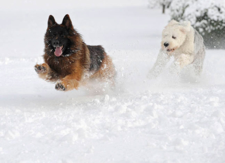Disse to smukke harer hører til en zoologisk have i den sibiriske by Krasnoyarsk, Rusland, hvor temperaturen har ligget på -35 grader. Trods den bidende kulde har de valgt at lege udendørs