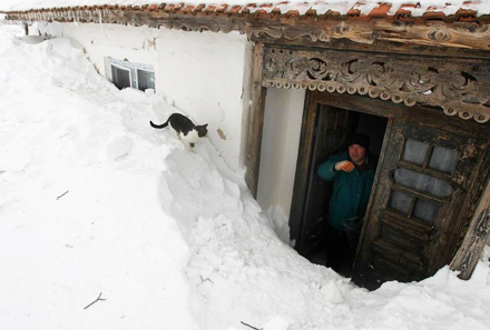En lille forfrossen kat i Bucarest