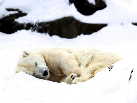 Isbjørnene i Berlin Zoo synes ikke at klage over kulden. Her ligger en nuttet isbjørneunge og slapper af på en komfortabel 'snepude'