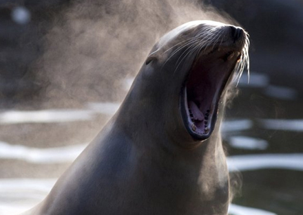 Denne søløve kommer oprindeligt fra Californien, men bor nu i Berlin Zoo, Tyskland. Dampen, som omgiver dens krop, afslører den bidende kulde. Man fristes til at forestille sig at den råber: -Jeg vil hjem til Californiaaaa!