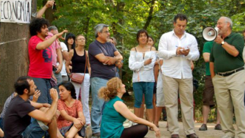 'De indignerede' demonstrerede i går videre i Madrid, og så fik de pludselig rigtigt fint selskab. Den anerkendte amerikanske økonom og Nobelpris-modtager, Joseph Stiglitz, holdt tale til en stor gruppe 15-M demonstranter mandag eftermiddag i Parque del Retiro i Madrid.