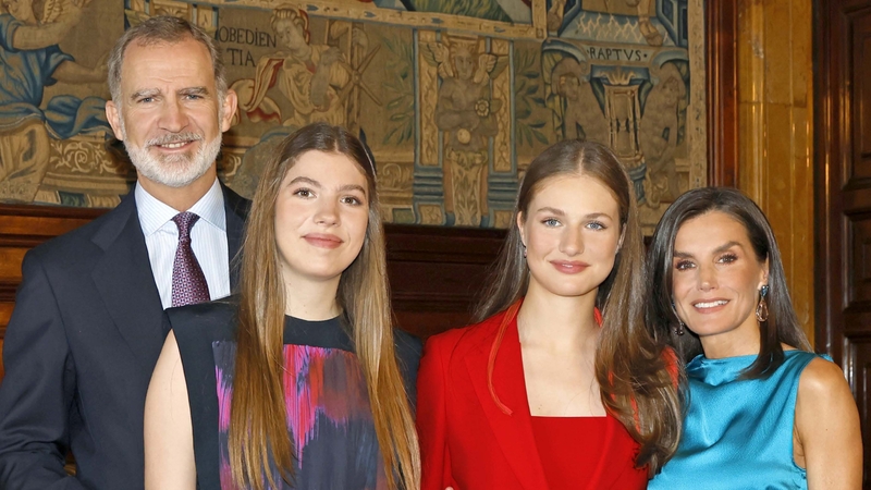 Kongen, dronningen og deres døtre i et foto fra fejringen af 10-årsdagen for Felipe VI's regeringstid