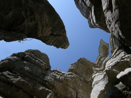 Lige overfor kan man se store klippeblokke, der hænger og ”dingler”. De ser ud til at kunne falde ned i kløften, hvad øjeblik det skal være.