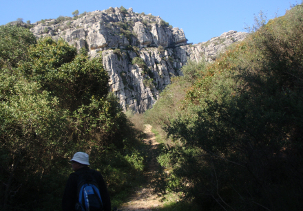 Herefter følger 800 m. på asfaltvejen, og husk at gå i venstre side. Lige så snart vi får Casares i sigte mod nord, skal vi forlade asfaltvejen igen og gå ind til højre. Her starter et vejværn på højre side, og derefter er det bare om at kravle over et rustent hegn. Vi går nu hen imod et stort ensomt træ, og til venstre herfor finder vi vores sti, som går ned mod Lille Knud langs med en lav klint. Stien går nedad, imens man kan se Lille Knud ude til højre.