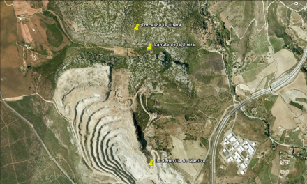 Man kommer hen til turens startpunkt i krydset mellem A377 og motorvejen A7. Lige nord for krydset er der en rundkørsel, og her tager man den vej der hedder ”Caminos”. Denne vej går nedad,og efter ca. 1 km. - lige før vejen fortsætter ind under motorvejen - tager man grusvejen ind til venstre.
