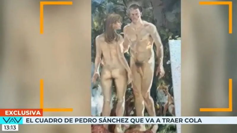 Et usædvanligt kunstværk har skabt massiv røre i de spanske medier og på sociale platforme. Maleriet, der blev fundet på Madrids berømte loppemarked, El Rastro, forestiller den spanske premierminister Pedro Sánchez og hans hustru, Begoña Gómez, i rollen som Adam og Eva – helt uden tøj.