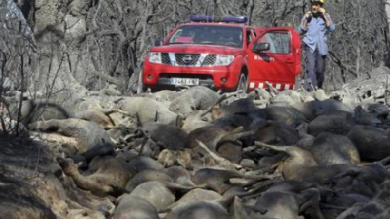 Ud over kvæstede og døde mennesker er et stort antal dyr omkommet i flammerne. På flere gårde i området er husdyr brændt inde.
