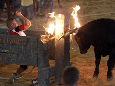 Musens optræden blev overværet af spanske og udenlandske medier, som ikke ville gå glip af søndagens tophistorie - hvis det nu skulle lykkes for den 550 kilo tunge tyr at få ram på endnu en plageånd.