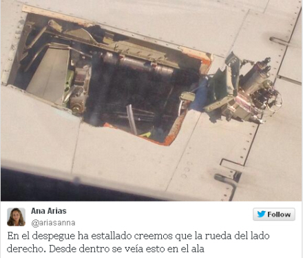Ifølge flere medier opstod der panik ombord, da passagererne hørte et kraftig brag under starten og så, at der var et hul i flyets højre vinge.