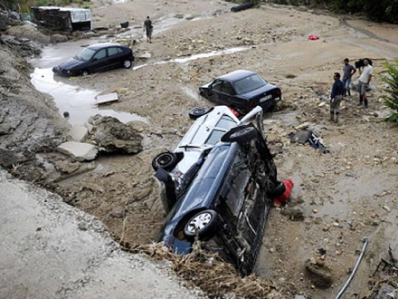 Beboerne i området taler om en ”sand katastrofe” og siger, at de aldrig har oplevet noget lignende. Redningsmandskab er nu i gang med at fjerne vand, mudder og jord.