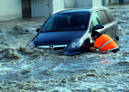 Folk prøver desperat at holde vandet ude
