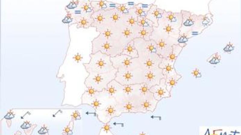 Efter nogle dage med regn, blæst og torden, ser det nu ud til, at somemrvejret er på vej tilbage. Eneste undtagelse er de vestligste egne i Gallicien og de nordøstligste egne i Catalonien, hvor der endnu kan komme nogen nedbør.