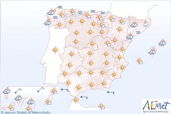 Hele Spanien får i løbet af dagen mest klart, tørt og solrigt vejr.