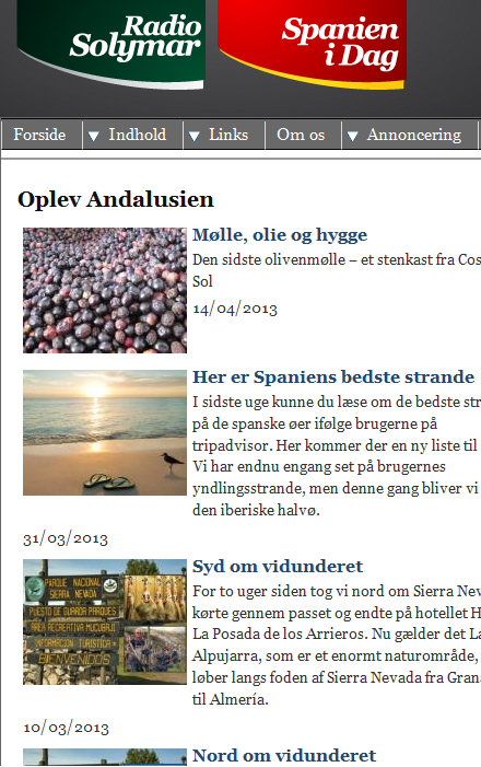 Nu er du kommet ind på indholdsfortegnelsen over alle de artikler, der ligger om Andalusien. Scroll nedad og find en artikel. På den første side ligger der 10 artikler