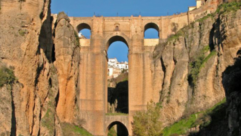 El Puente Nuevo er 98 meter høj og blev opført i midten af 1800-taller for at forbinde de to bydele. Her med Paradoren i baggrunden
