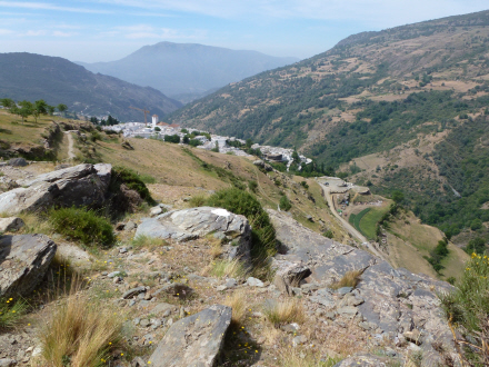 Fra den smukke bro går stien opad imod Capileira, og her må du forberede sig på flere højdemeter. Det hele bliver til gengæld belønnet med en meget smuk udsigt ud over dalen og Sierra de Contraviesa på den anden side.