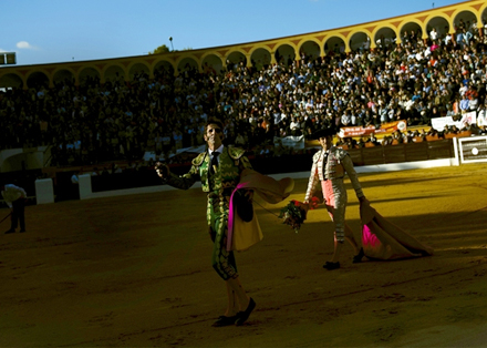 Juan Jose Padilla hilser på et jublende publikum