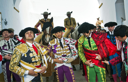 Tyrefægterne fra venstre Morante de la Puebla, Jose Maria Manzanares og Juan Jose Padilla, er klar til at træde ind i ringen i gårsdagens tyrefægtning