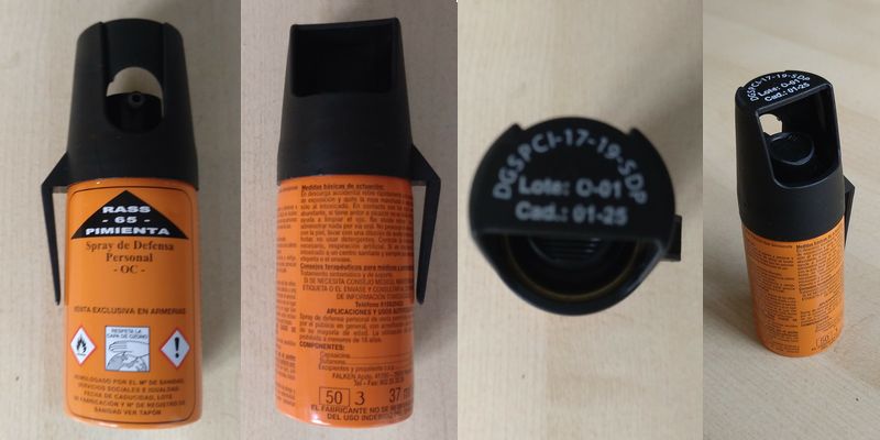 Ekspedienten bekræftede, at han var autoriseret til at sælge peberspray og henviste til, at der på de forskellige sprays står, at de kun må sælges i amerías: “VENTA EXCLUSIVAS EN ARMERIAS!