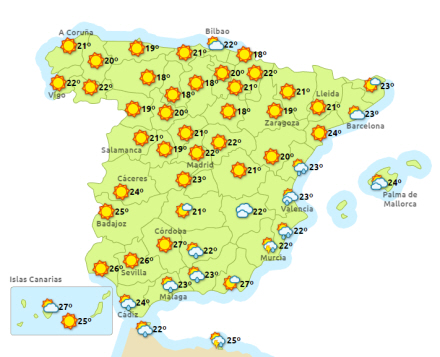 Madrid får en flot dag med sol og mellem 11 og 22 graders varme.