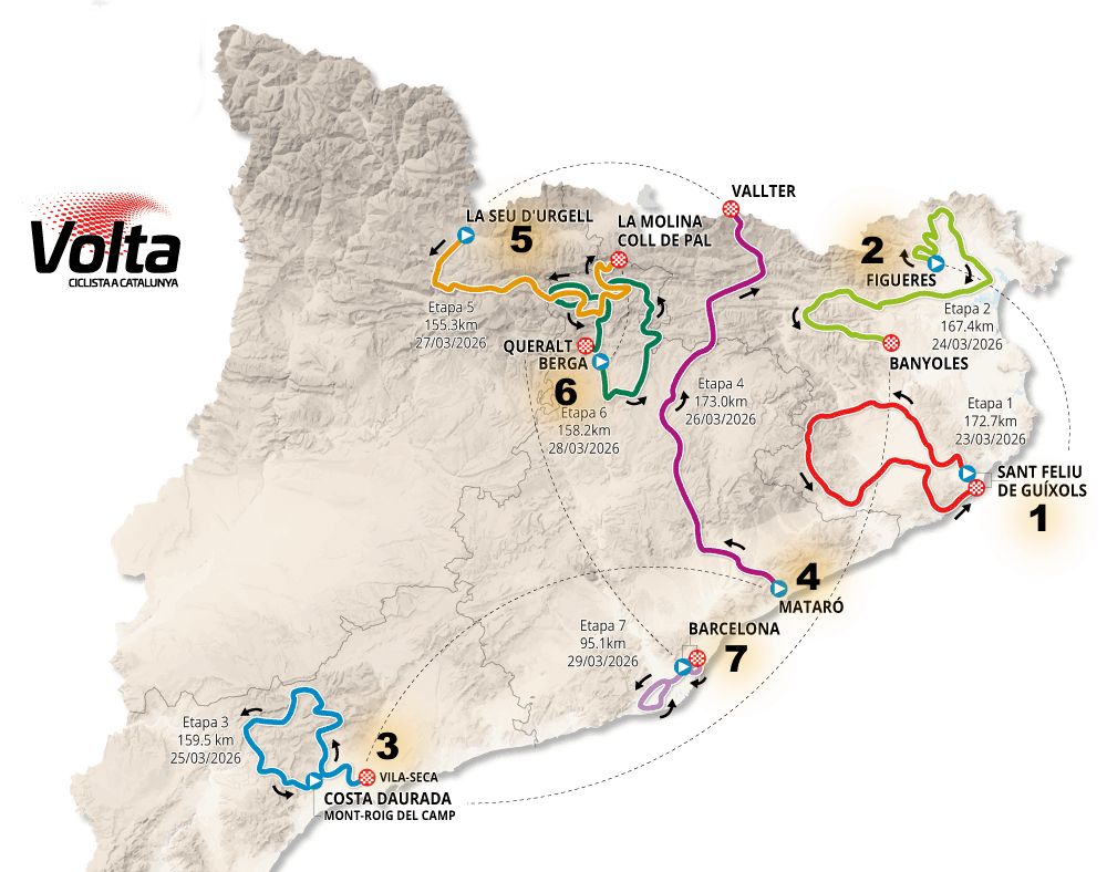 Her er en gennemgang af etaperne i den 105. udgave af La Volta a Catalunya 2026. Løbet, der er et af de ældste og mest prestigefyldte etapeløb i verden, byder i år på en rute med masser af udfordringer for både klatrere og de stærke sprintere, der kan overleve de catalanske bakker.