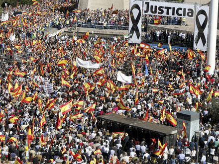 Protesten i Madrid var arrangeret af Spaniens største forening for terror-ofre, AVT, der beskriver sig selv som "det sidste bolværk for demokratisk værdighed i Spanien”.