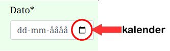 Når du vælger dato, så brug kalender-ikonet og husk, at datoen skal være efter i dag!