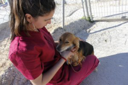 Formanden for dyreværnsforeningen, La Sociedad Protectora, Carmen Manzano, siger, at der kommer mange hunde og katte hver uge, som er havnet på gaden, fordi deres ejere ikke længere har noget sted at bo.