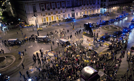 Ifølge politiet var der titusinder af mennesker på torvet og i omkringliggende gader. Arrangørerne taler derimod om op mod 200.000 demonstranter, der besatte pladsen helt frem til mandag morgen, hvor politiet besluttede at rømme området. Selv om demonstranterne havde fået besked om at forlade pladsen senest klokken 22.00 lørdag aften, fortsatte tusindvis af mennesker med at samles på Puerta del Sol.