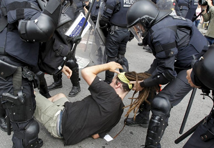 Titusinder demonstrerede i weekenden i en lang række spanske byer i protest mod økonomisk krise og sociale nedskæringer. Nogle steder protesterer folk endnu, men urobetjente har gjort brug af ny lov og anholdt flere.