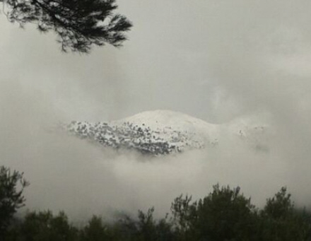 Snehøjden faldt søndag fra 900 til 400 meter, og der er kan i dag falde mere sne. På Lluc lå sneen i 700 meters højde, og det betød, at det lille kapel var dækket af en fint lag sne.