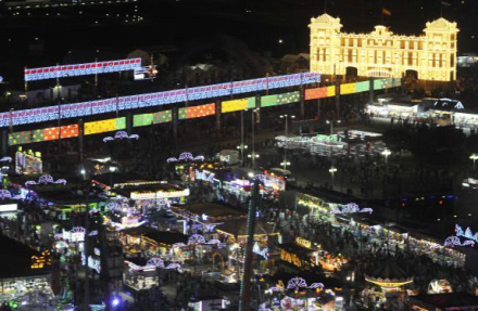 'La Feria de Noche' samler mange tusinde mennesker på feriapladsen ved siden af byens kongrescenter.