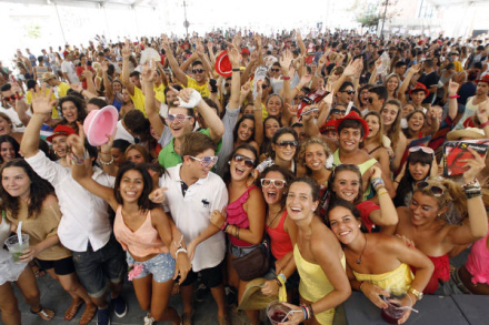 Andre pladser har udendørs barer og spiller høj musik i højtalerne. En tradition beboerne må leve med eller også må de investere i et par ørepropper...