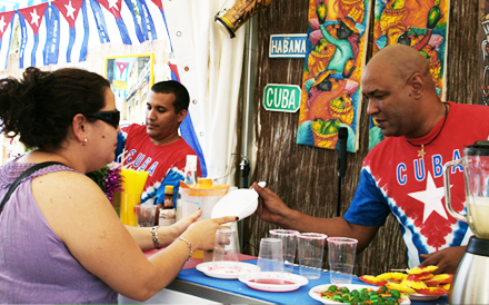 21 stande – smagsprøver på gastronomi og drikkevarer fra deltagerlandene – gigant-barbecue – salg af kunsthåndværk – værksteder – gadeoptog (lørdag kl. 12:00) - flamenco-show og meget mere.