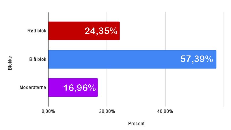 I vores afstemning vil den blå blok sikkert kunne danne regering uden at tage hensyn til Moderaterne.