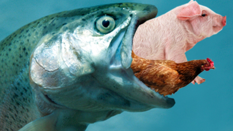 Dyr og fugle spiser fisk, men indtil videre har man ikke hørt om fisk, der spiser fugl eller svin. Det bliver der nu lavet om på, for fra juni bliver det tilladt at fodre fisk med kylling og grise.