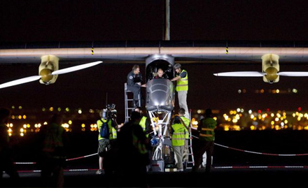 På flyet er placeret 12.000 solceller, som producerer energi til de fire motorer. Overskydende energi gemmes på et batteri, som gør det muligt også at flyve om natten.