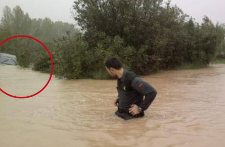 Det var lige ved at gå helt galt for en kvinde, der blev fanget i sin bil, da den blev taget med af vandmasserne. Det skete i går formiddag, da kvinden kom kørende ved Partida La Bodega i Moixent, Valencia. Politiet hørte tilfældigt kvinden skrige. På det tidspunkt var vandet trængt ind i bilen, og hun kunne ikke selv redde sig ud. Med assistance fra andre tililende lykkedes det for politiet at redde kvinden i sikkerhed.