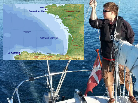 For nylig kæntrede en båd ud for den nordvestslige kyst. Det er ikke uden grund, at Biscaya-bugten er berygtet og frygtet blandt sejlere. I sommeren 2013 krydsede Erik Graae Rasmussen strædet, og det er noget, der får det til at kilde lidt i maven. Vejret kan nemlig skifte på et øjeblik.