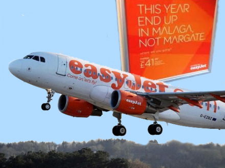 De omkring 60.000 indbyggere i den engelske kystby Margate raser mod en af Easyjets seneste reklamekampagne for selskabets flyvninger til Málaga.