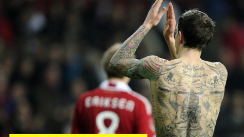 - Selvfølgelig vælger jeg helten fra min hjemby her. Han er dansk, og en af verdens bedste forsvarsspillere, og han er helt dækket af blæk. Udover adskillige emblematiske vikingetatoveringer har han et latinsk ordsprog "Døden er sikker, dens tid er ikke"" tatoveret i nakken. Hans seneste tilføjelese er bogstaverne YNWA (You'll Never Walk Alone - Liverpools motto) på sine knoer, som viser hans loyalitet til Liverpools tilhængere, siger direktøren til The Telegraph.