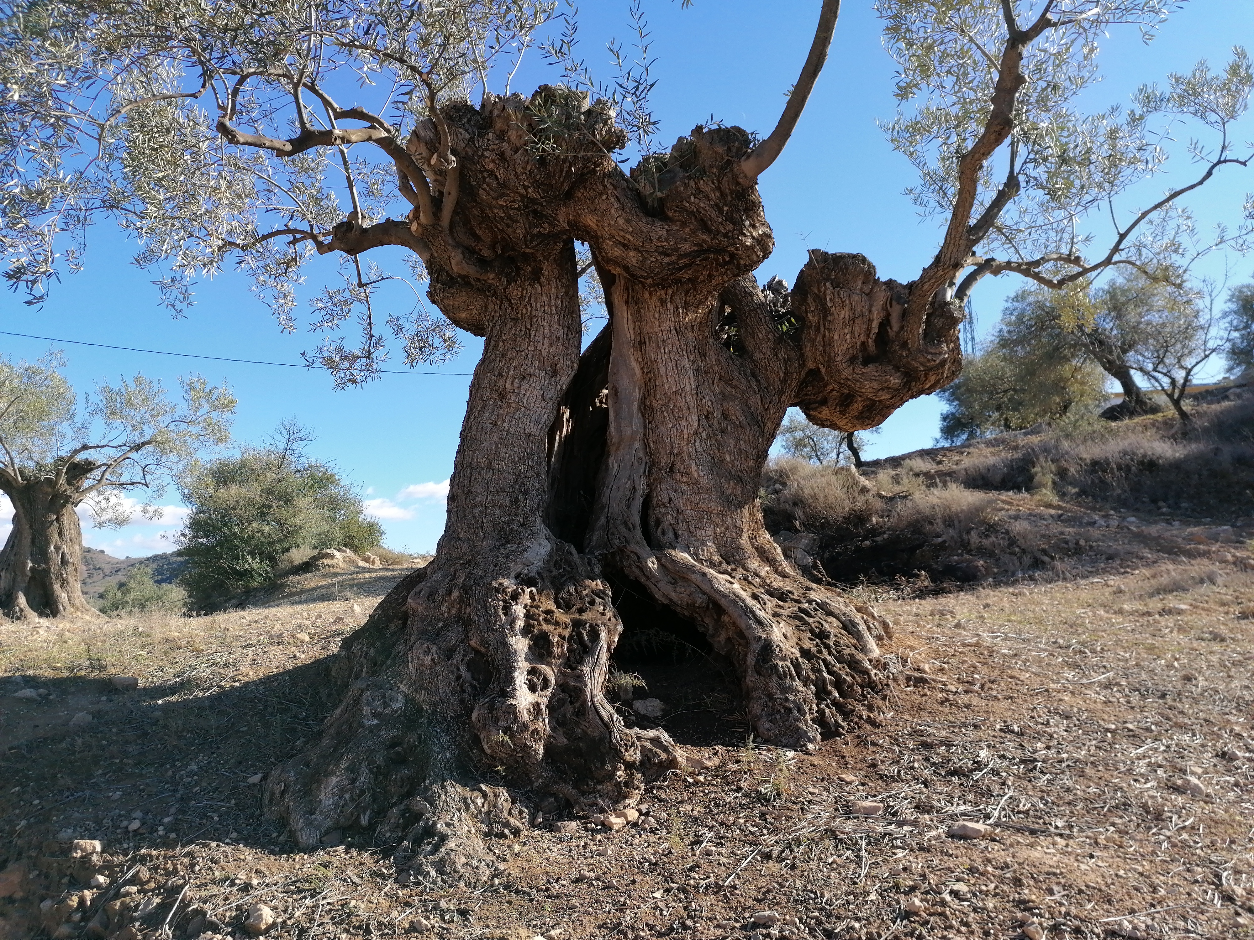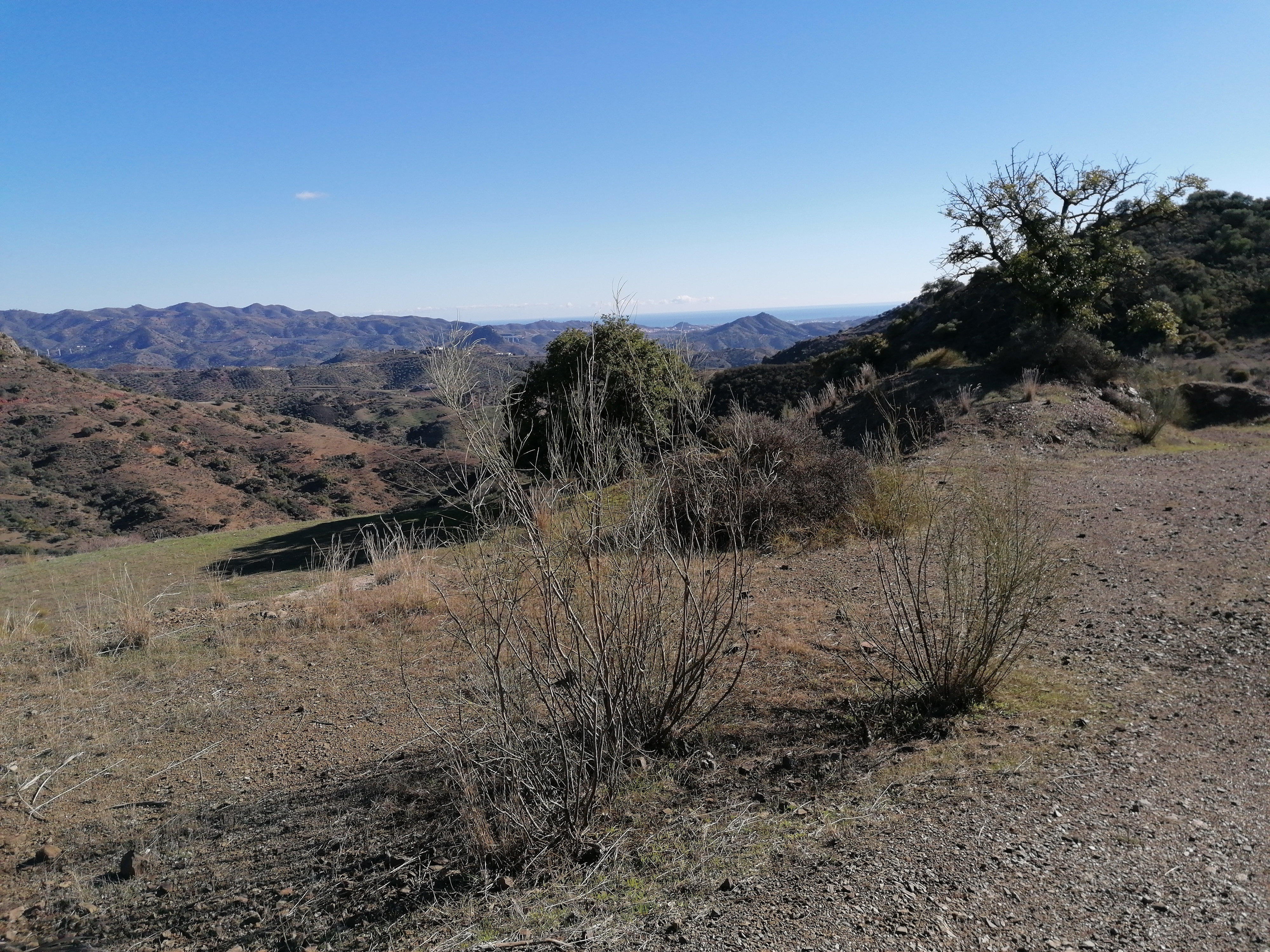 Så er vi klar til at gå i gang, og det er som sagt den første del, der er den hårdeste. Men efter de første højdemeter fortsætter turen ned mod Málaga, og vi kommer forbi ældgamle oliventræer og landejendomme i ruiner fra den tid, da folk boede oppe i bjergene.
